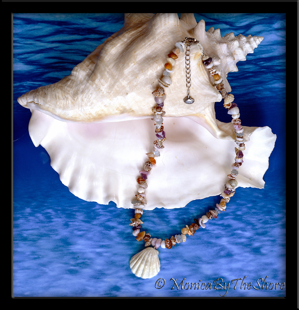 Natural beach style Hawaiian Sunrise Shells jewelry designs by MonicaByTheShore on the North Shore of Oahu, in Haleiwa, and in Ko'Olina, Hawaii.