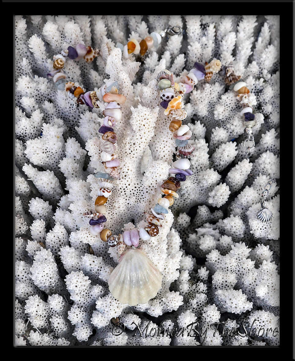 Albino Sunrise Shell "Beach Candy" Seashells and Gemstone Necklace