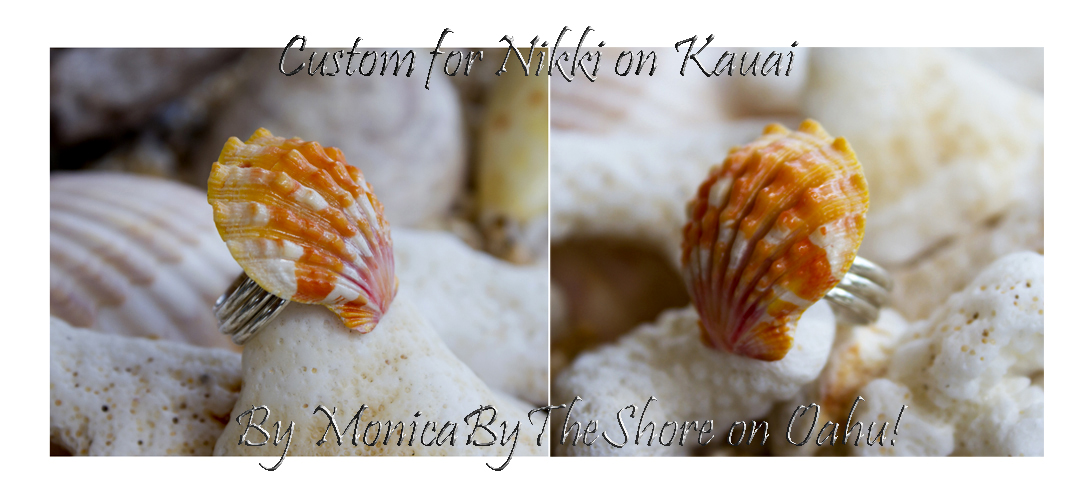 A very special custom order Hawaiian Sunrise Shell & sterling silver ring for "Nikki" on Kauai. Nikki chose one of my Pendant shells for her ring design.