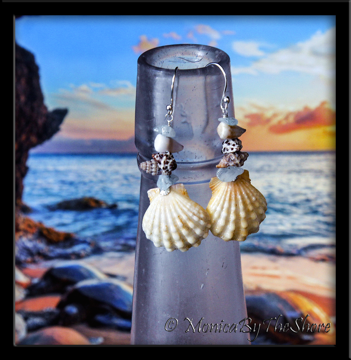 Original one of a kind Sunrise Shell jewelry designs by MonicaByTheShore of Haleiwa, on the North Shore of Oahu, and Ko'Olina, Hawaii.